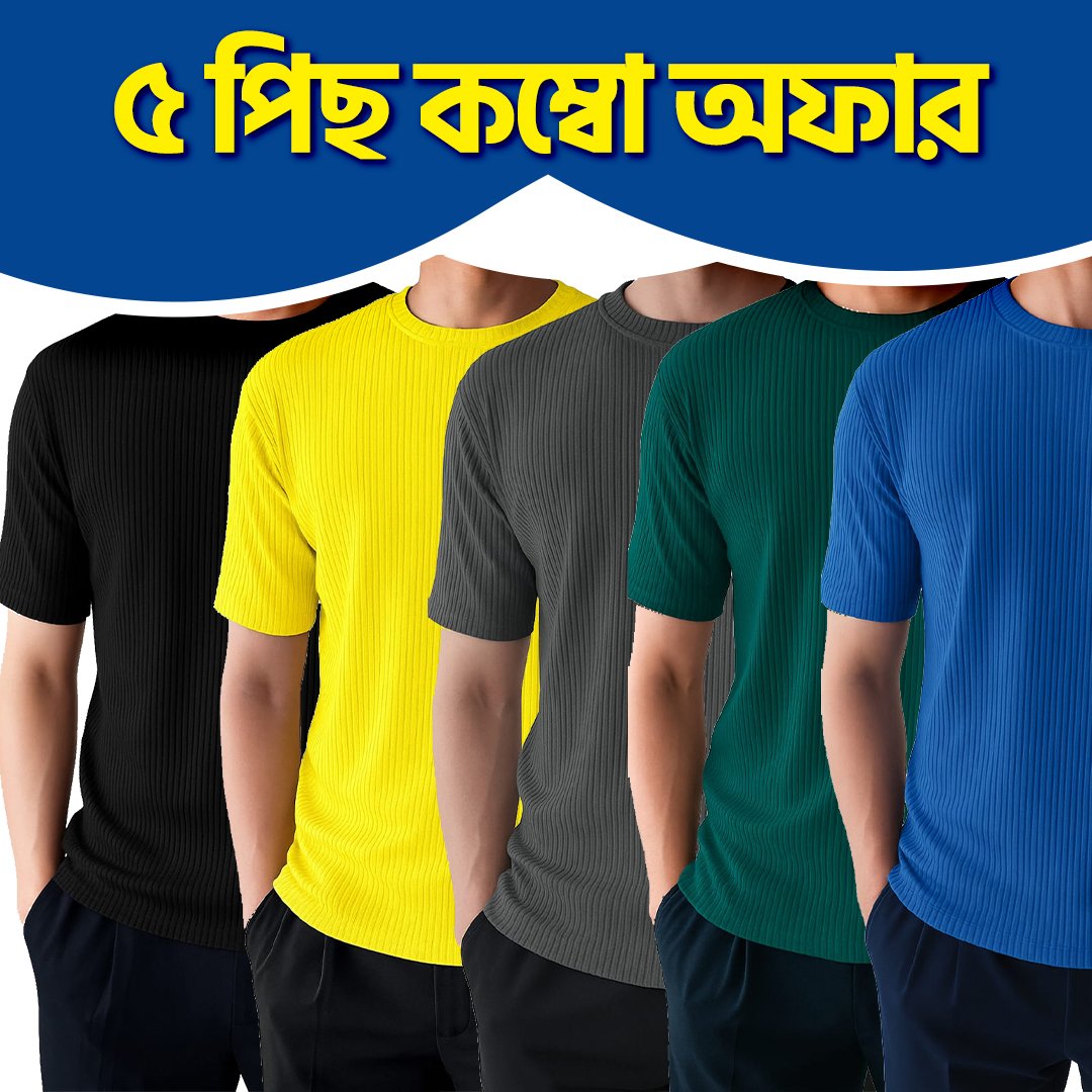 এই ৫ টি আকর্ষণীয় সলিড হাফ স্লিভ রিব টি-শার্ট মাত্র ৯৯৯/- টাকায়, এছাড়াও ৫ টি বা তার বেশী পন্য ক্রয়ে থাকছে সারাদেশে ফ্রি হোম ডেলিভারি সার্ভিস ‼️